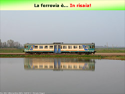 La presentazione parte con alcune foto familiari ai lettori di questo sito, che mostrano il tradizionale inserimento ambientale della ferrovia. Prosegue però ... un po' più cattivella con qualche paragone tra quel che ci piace e quello che ci piace decisamente meno, in tema di cemento, gallerie, linee che scompaiono e cose di questo genere.